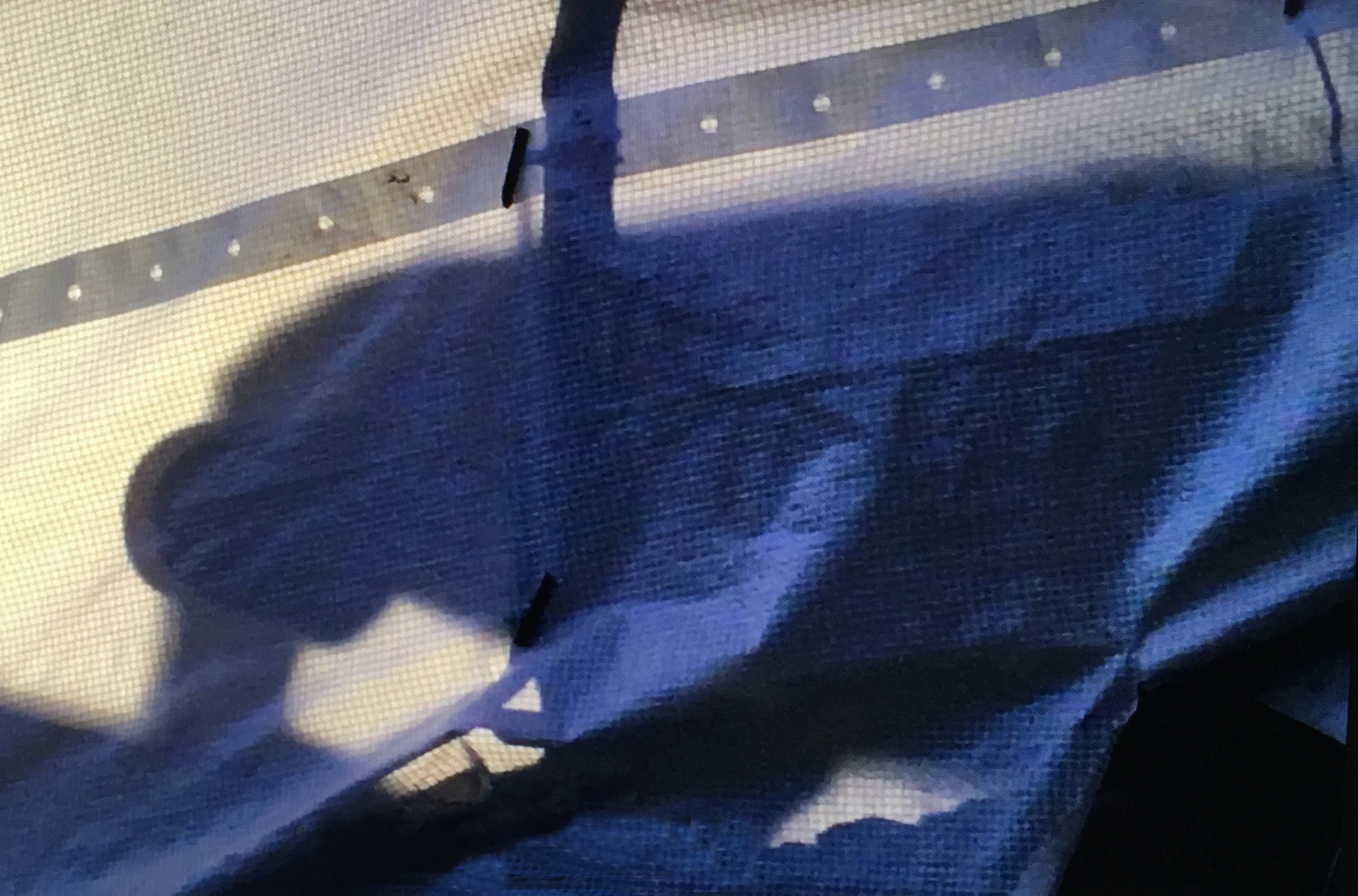 Shot from my roof. It was serendipity that the image projected onto the tarpaulin turned from a predatory beetle to a human who appeared to be invading my space at dusk. He kept mentioning something about Gloria …